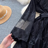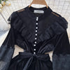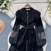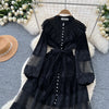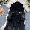 A1: This dress is crafted from high-quality, flowing fabric with delicate tulle sleeves for an airy and refined look.